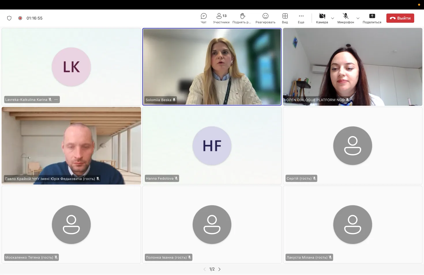 Модератором заходу виступила Сарибаєва Ганна Миколаївна, д.ю.н., доцент, засновник ГО «Open Dialogue Platform». У заході взяли участь і студенти 1-го курсу юридичного факультету.